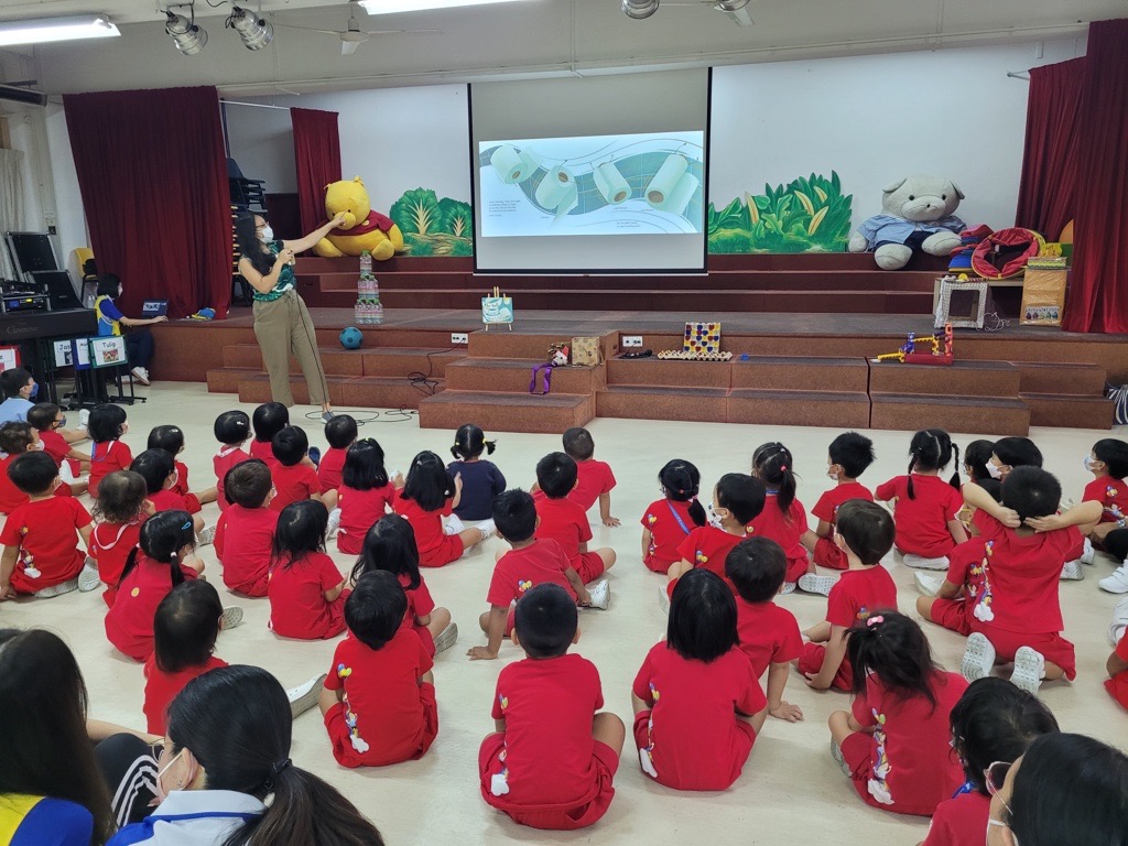 At The Ascension Kindergarten, one of our parents, Sophia Huang, a children’s author and upcycling enthusiast, read her book “Mr Roll Finds New Life” to the children at an assembly session in Term 3 last year. She shared about upcycling and the fun games she created out of recyclable materials!