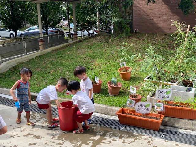 Uncle’s open invitations to his mini garden gave the children the opportunity to carry out simple gardening tasks such as weeding, watering the plants and loosening the soil. Seeing that the children were so interested in the plants that they looked forward to visiting his garden, Uncle generously donated seeds and plants for the children to grow themselves at our school.