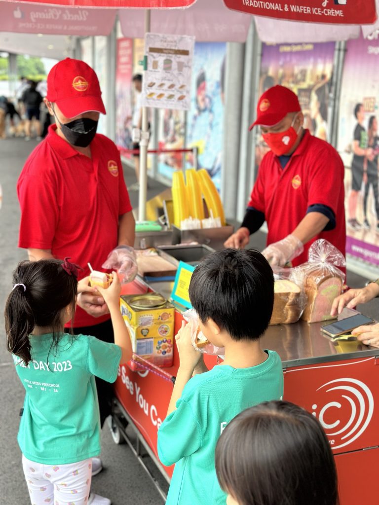 Despite a heavy downpour, more than 200 parents, grandparents and children turned up for the Family Day event. The Singapore Sports Hub turned into a sea of green as families wore the Little Seeds Preschool Family Day t-shirt in unity. It was heart-warming to witness the wonderful community of support for the children!